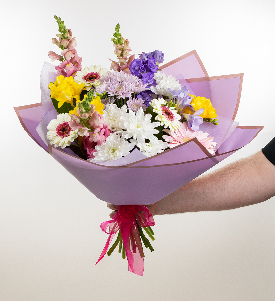 Our hand-tied bouquets are presented beautifully wrapped with ribbon. If you would like to have your flowers in a water filled box (vox), please select the additional option below.