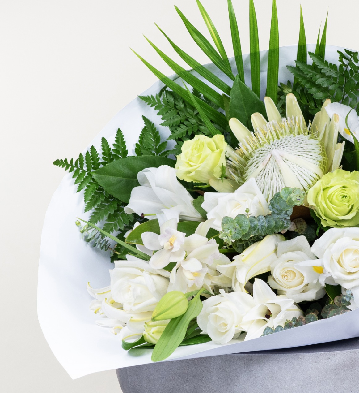 A wonderful, classic selection of elegant seasonal white and green flowers.